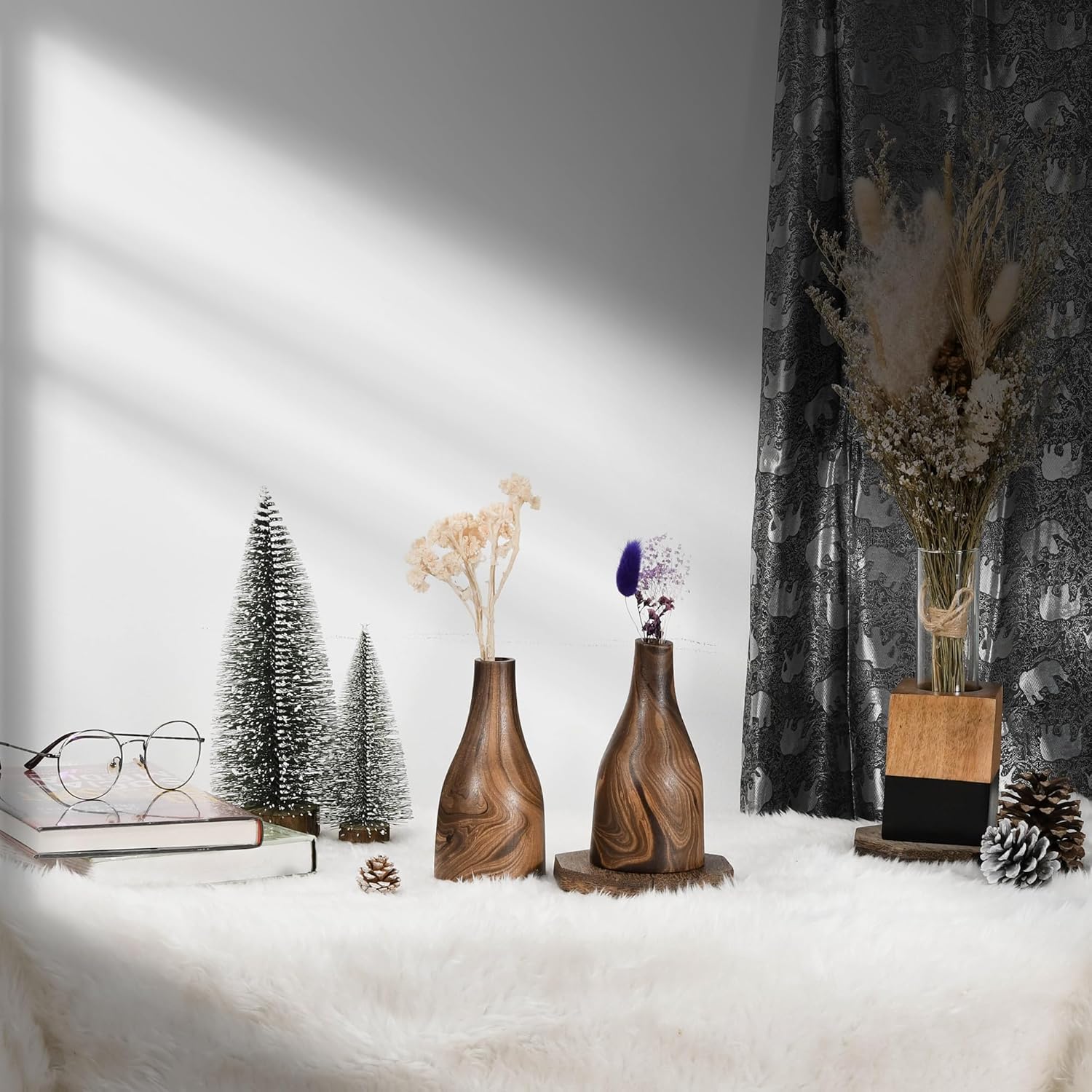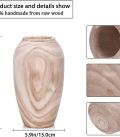 10″ Tall Handmade Wooden Flower Vase, Large Wood Vase Decoration for Flower Arrangement Home Decoration